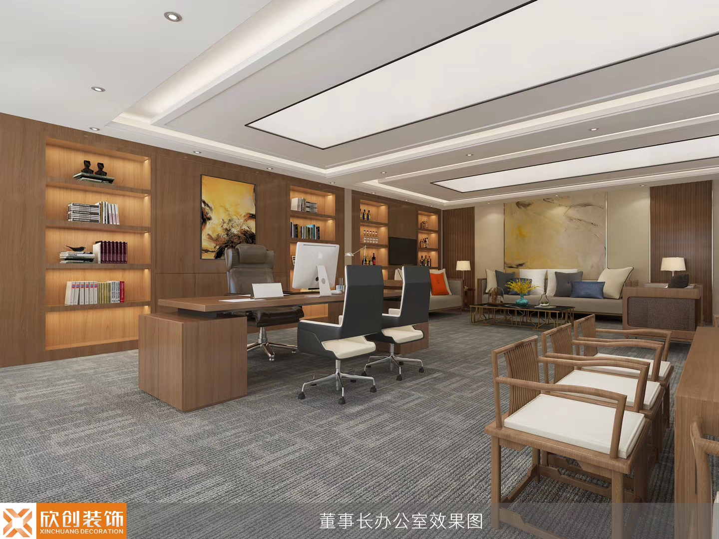 安徽才格国际教育集团是由安徽欣创装饰设计施工一体完成,总面积约860平方米,空间布局分别为前台、接待室、水吧洽谈室、办公区域及经理办公室。