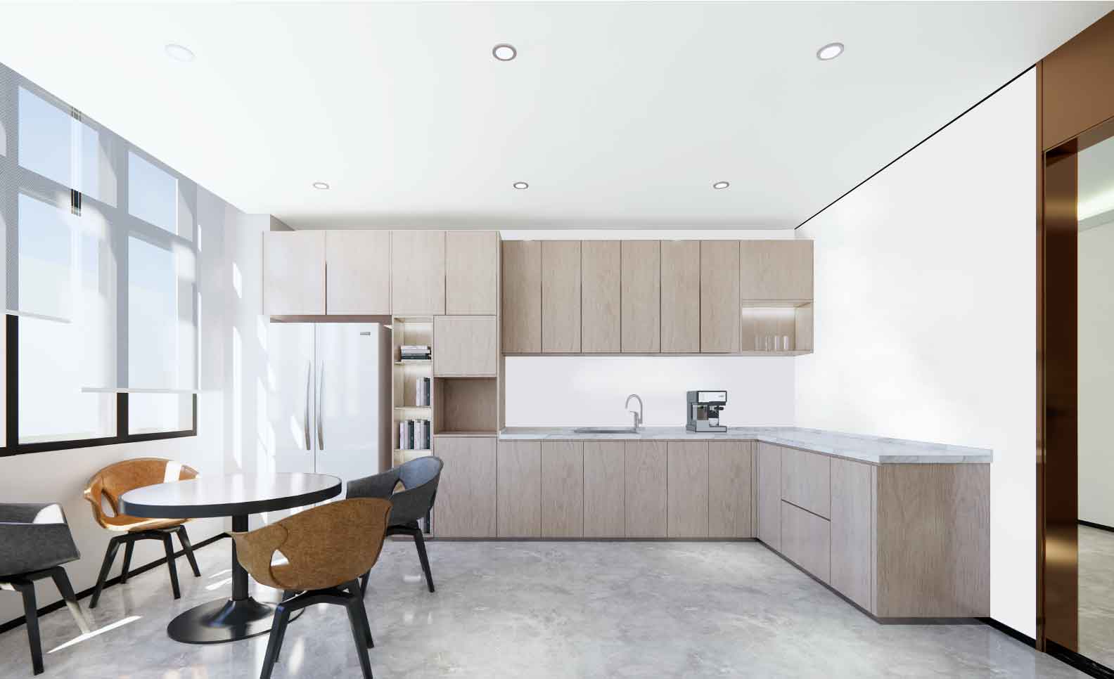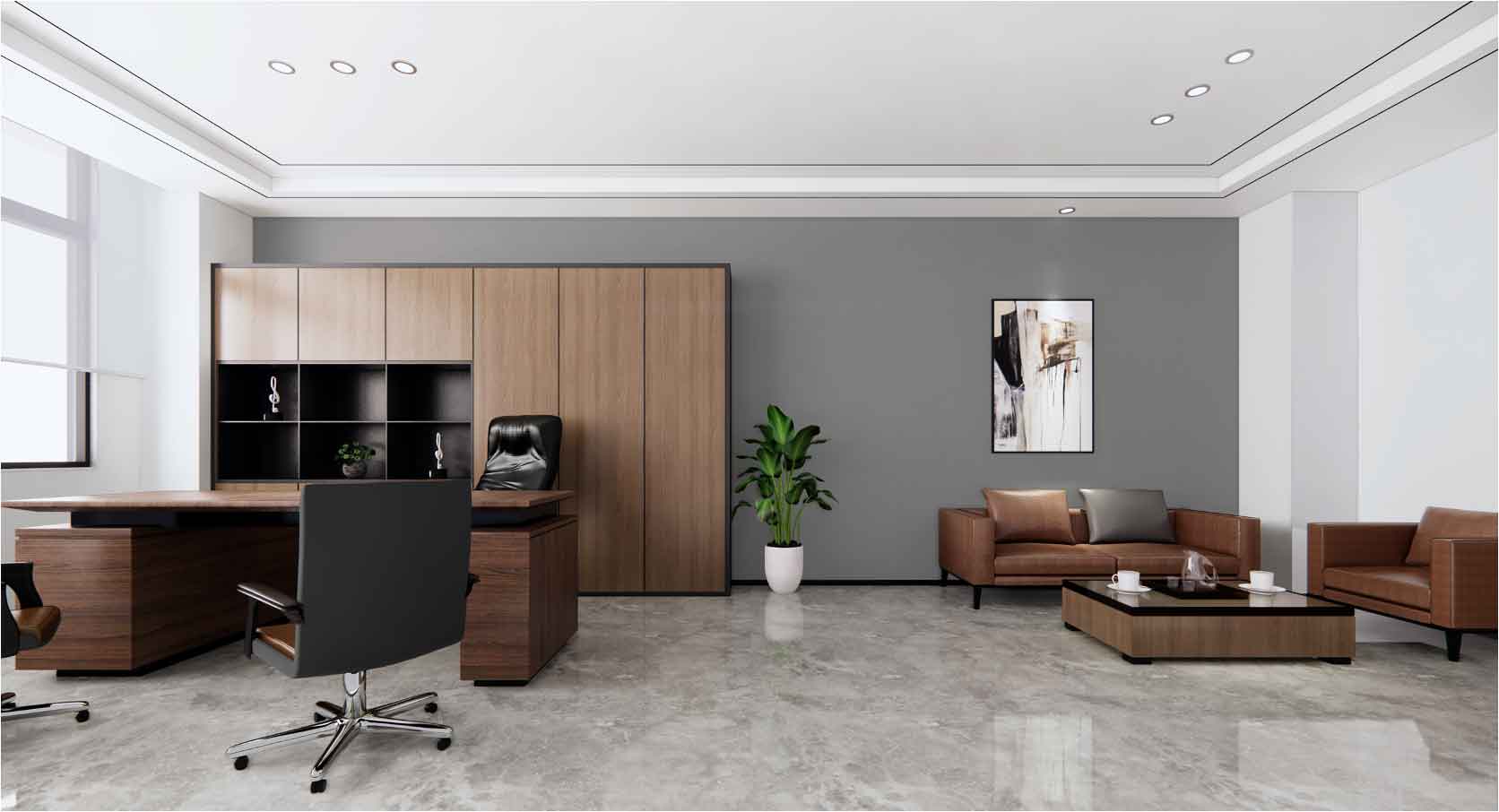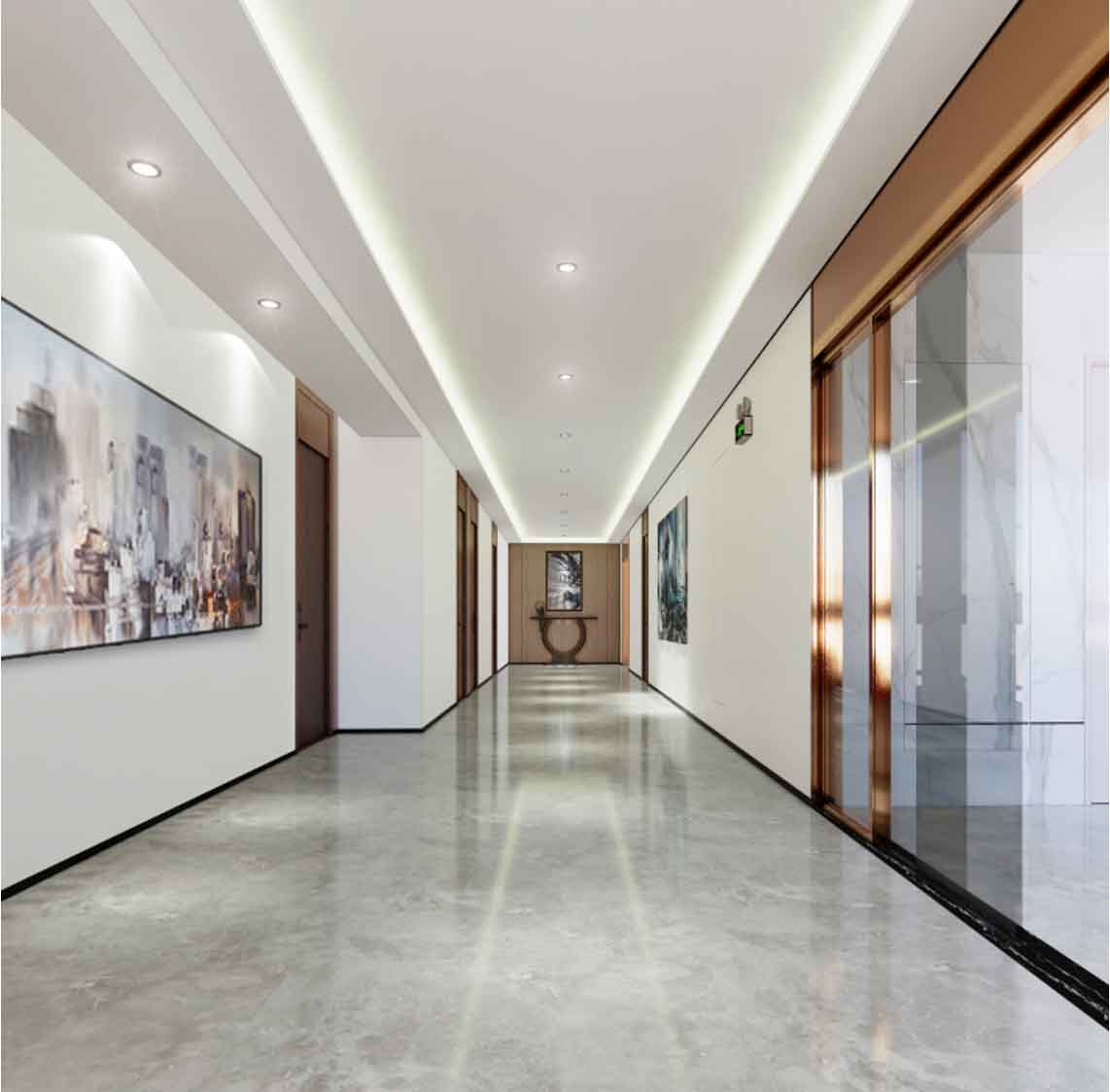 安徽欣创装饰同时也注重对技术和材料的运用,致力于创造舒适自然的健康办公楼装修。发挥办公楼装修的结构美,注意空间造型的简洁化,注重对办公室内材料色彩的搭配。