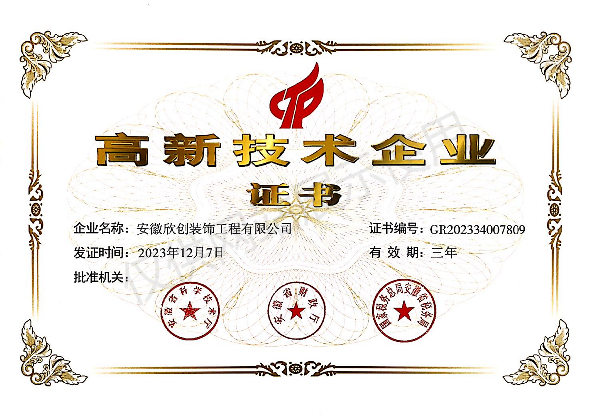 创新引领 科技赋能——安徽欣创装饰工程有限公司通过国家“高新技术企业”认定
